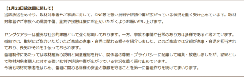 - 「母親や番組の姿勢に問題があるのでは」